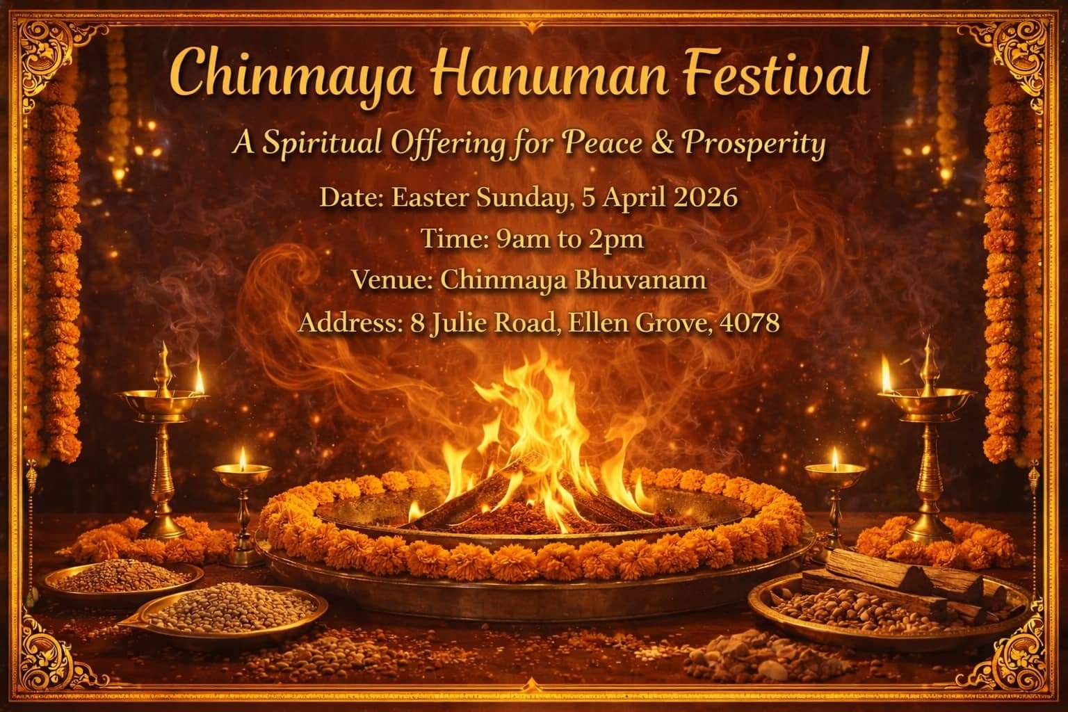 Hanuman represents selfless service, fearlessness, and devotion to truth – values Chinmaya Mission lives by.  This Yagna is not just a ritual, but a symbol of national and spiritual upliftment – bringing the community together in a powerful vibration of peace and purpose.
